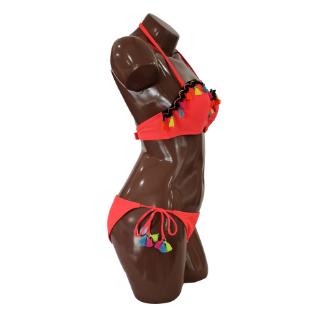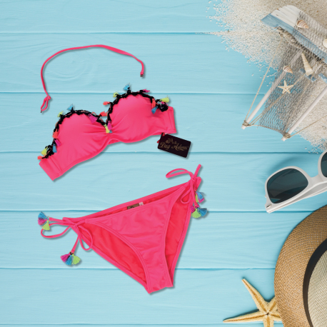 Whether you're looking for a classic or trendy look, our range offers a variety of patterns and colors to suit your personal style. From the triangle bikini to the bandeau or the off-the-shoulder top, each piece is designed to enhance your curves with elegance and comfort.