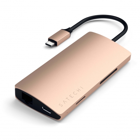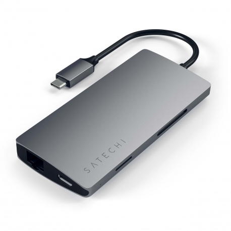 SATECHI HUB Aluminium multi-ports 8-en-1 type USB-C vers HDMI 4K, Ethernet, Micro SD, SD, 3 x USB3.0 et 1 port Type USB-C