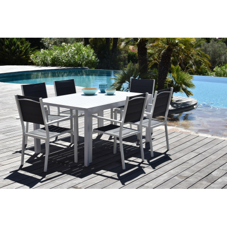 Partagé des moments conviviaux en extérieur avec la Table ''MANUELA'' en aluminium blanc.
